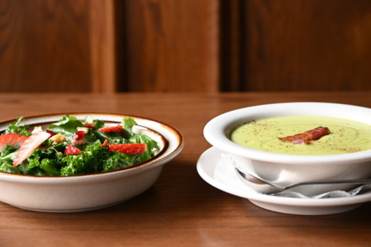 【SEASONAL SOUP】 ウスイエンドウとベーコンのスープ ベーコンの旨味と香りを移したウスイエンドウを丁…