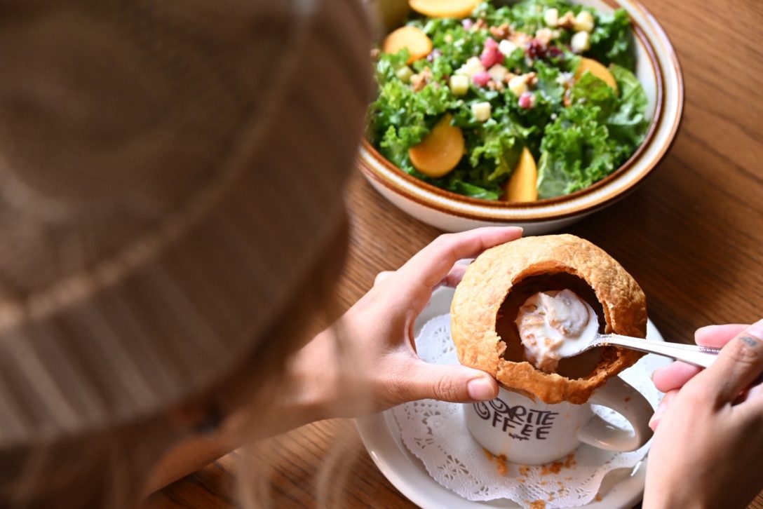 今が旬の和歌山県産きのこを使用した具沢山のクラムチャウダーを、サクサクのバイ生地で包み、焼き上げました。パイを崩しながら絡めてお楽しみください。